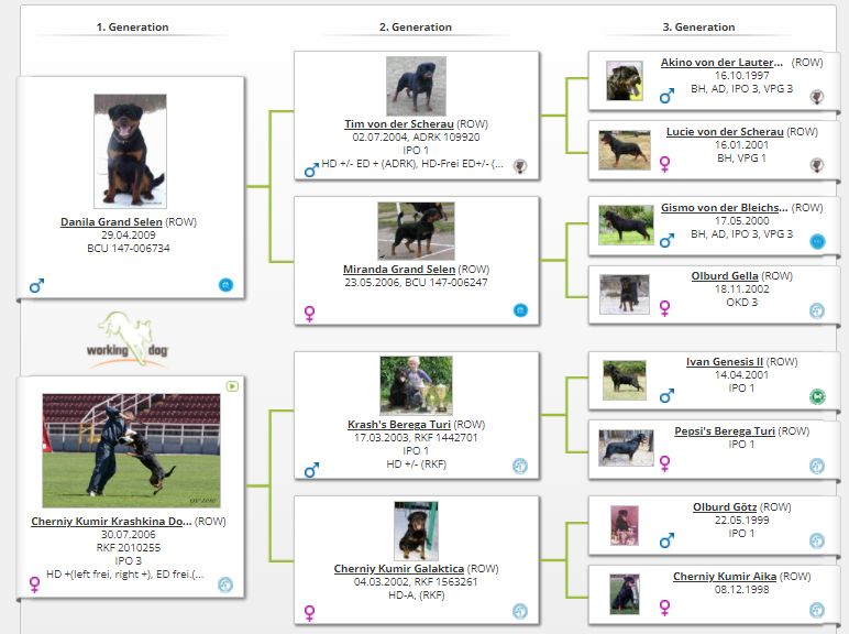 Führigkeit: G(3) Schussprobe: gleichgültig Fluchtversuch/Angriff: Sg(2) Angriff aus der Bewegung: G(3) Einsatzfreude: Sg(2) Beruhigungsvermögen: Sg(2) Belastbarkeit: G(3) Formwertnote: V