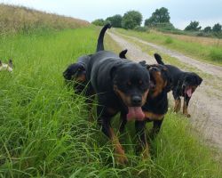 We breed Rottweilers with famous German pedigrees and lines. All adult Rottweilers and rottweiler puppies possess sound temperaments, healthy powerful bodies, excellent massive bone structure, working ability, and extremely high intelligence. These dogs are calm, trainable, protective, courageous and devoted to their owners and family. Obedience training is essential.